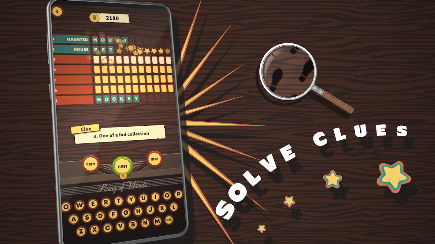 This is not just another standard word connect or word search game. Fans of crossword puzzles, letter guessing games, and other word games will love String of Words because it is something new and different. This is a word puzzle game for adults who like to have fun!
