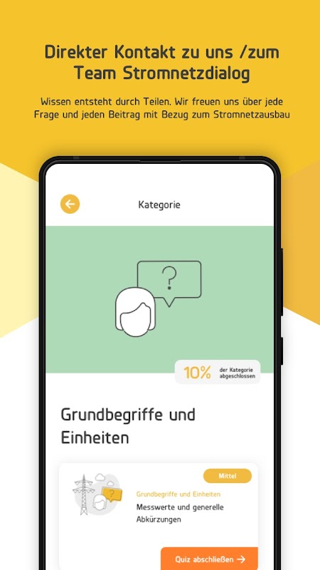 EINZIGARTIG: Reicht eigene Quiz-Fragen zum Stromnetzausbau ein und tragt zur Weiterentwicklung der App bei.