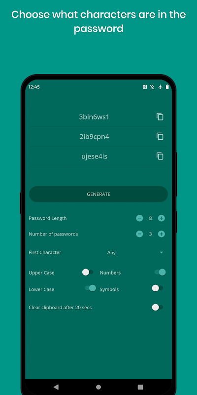 Quickly generate strong and secure passwords with any combination of characters