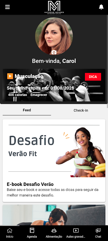 Online training application, access to training details, you can watch exercises execution videos, consult the training schedule performed, update the loads used during training, receive tips and information in the news feed.