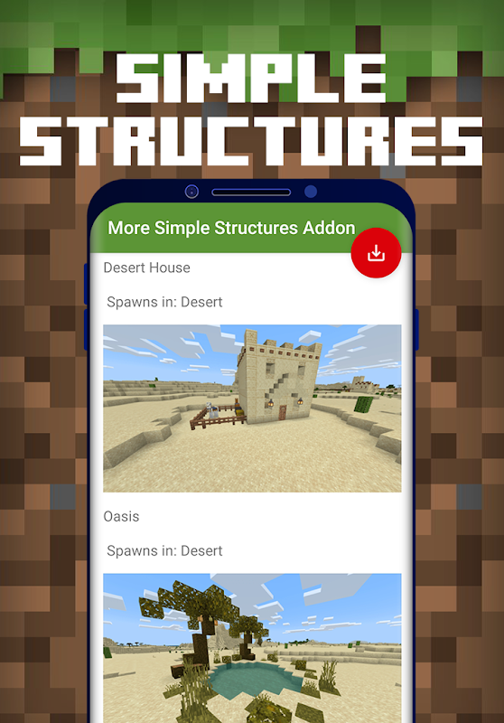 Structures Mod for Minecraft PE is a free downloadable content for Minecraft Pocket Edition game, where you can automatically download & install huge collections of Structure and Building Mods to your Minecraft Bedrock world in 1-Tap!