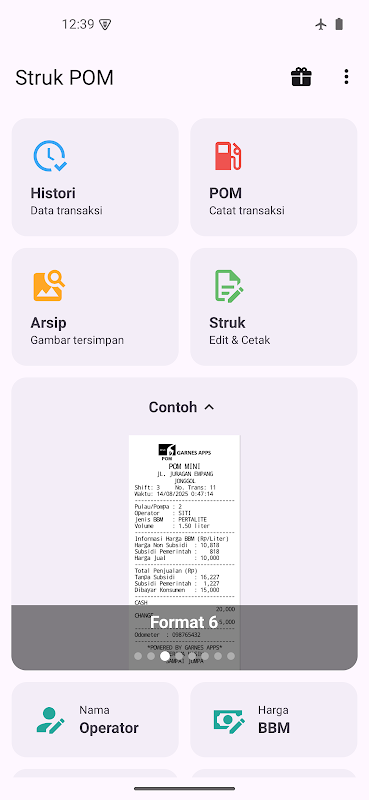 Manage all transaction records, daily reports and print gas station / mini gas station / gas station receipts easily from your grasp offline and without logging in for free.