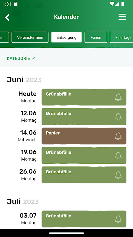 • Waste calendar: Dispose of rubbish with the current disposal calendar with relevant dates for students.