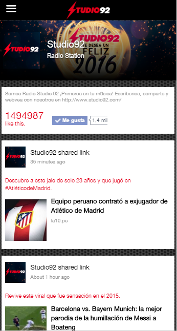 92.5 FM Somos Radio Studio 92 ¡Primeros en tu música! Escucha EN VIVO los últimos hits del Rock, Pop, Electro y más. Conversa en Facebook y Twitter con Galdós, Chino y Adolfo, Bruno Ascenzo y todos tus favoritos.
