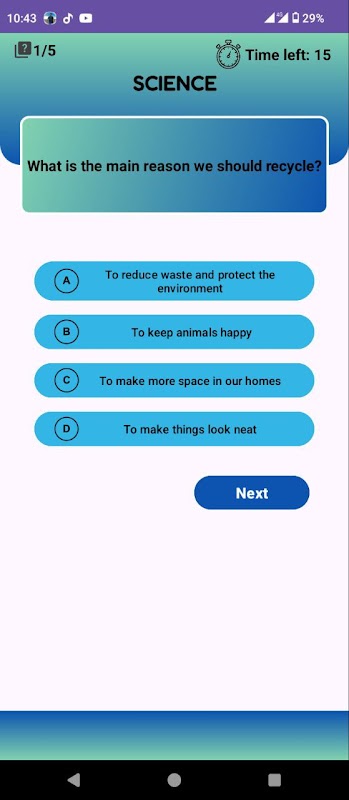 Each quiz offers a fresh challenge with randomized questions based on the other categories, ensuring a unique learning experience every time.