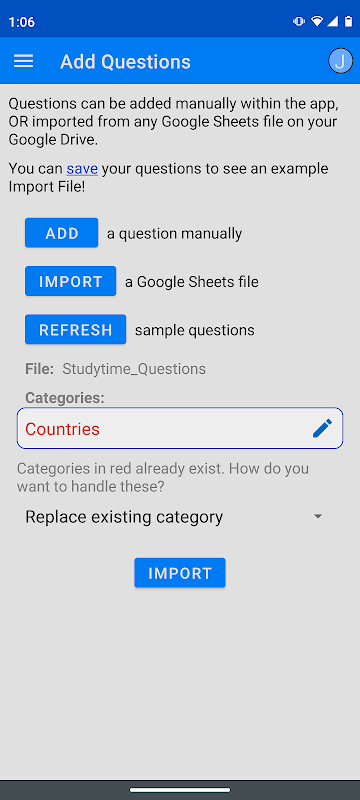 Learn trivia or study for school. Choose a built-in category, or add your own!