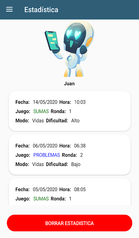 Con Robdy, nuestro pequeño y divertido asistente, los más pequeños no tendrán problemas en hacer ellos solos cada ejercicio, eligiendo el nivel de dificultad, cuanto mayor sea, más complejo se harán las operaciones y los problemas
