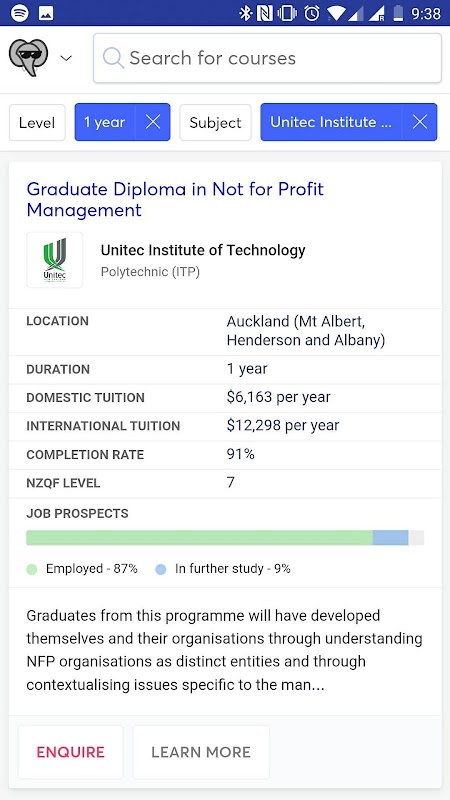 Study Spy makes it easy to compare course prices, duration, level, completion rate and employment outcomes - like how many grads get a job and their average salaries. Our information is powered by the Ministry of Education, Careers NZ, Tertiary Education Commission, NZQA, Universities NZ and Ministry of Business Innovation and Employment