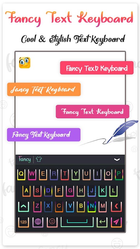 Stylish Fonts Keyboard : Fancy Fonts Keyboard Style Changer does not install fonts in your Android Phone. You can type message in Cool fonts with the selected font and you can simply paste copied text in any other apps.