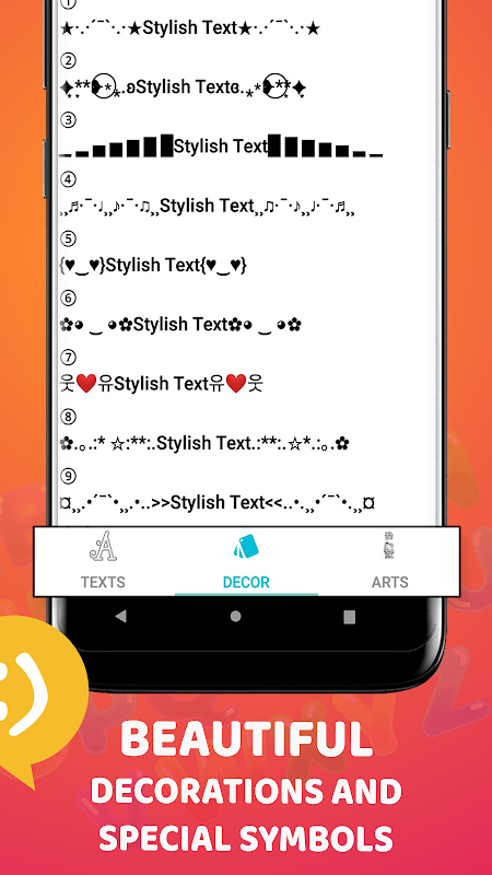 ❂Let’s open up Stylish Text on your phone and start writing beautiful text. Write bios, messages, tweets and many more . Write decorative greetings and surprise your friends on their special days. Chat with fancy text in groups and be a special one to get attention. Create cool and beautiful looking names in games and on social media.
