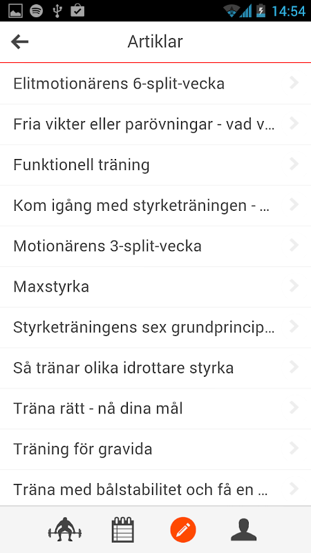 Styrkeprogrammet has over 700 training exercises with videos as well as written instructions. You can combine the exercises into programs. There is also a number of predefined training programs that you can use and articles about training, health and nutrition.