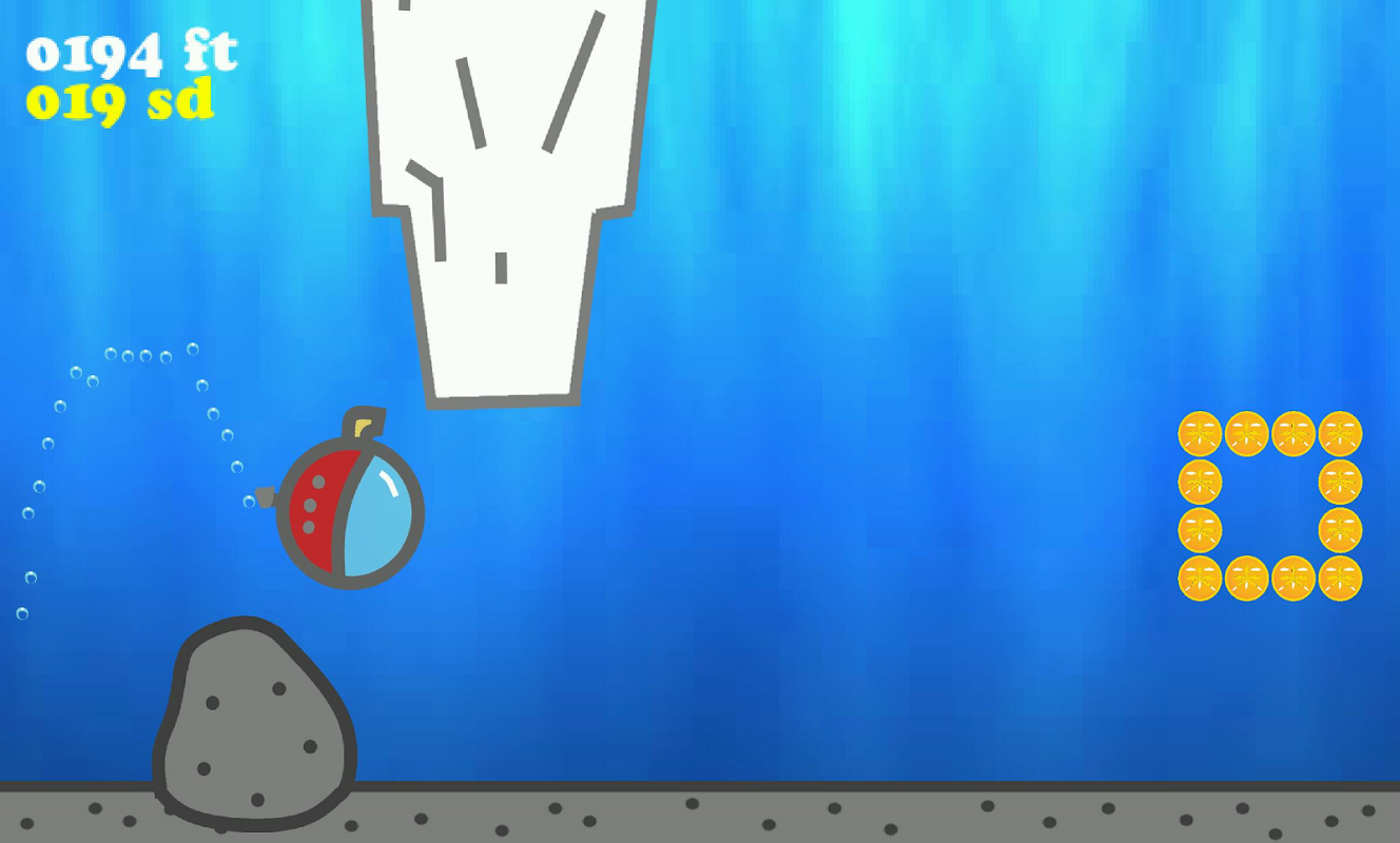 Collect floating Sand Dollars so that you can buy power-ups for your submarine and designs to customize your submarine and obtain the highest score you can!