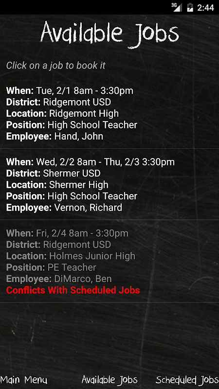 • View your Available Jobs, Scheduled Jobs, Job Details, & Teacher Notes with a click