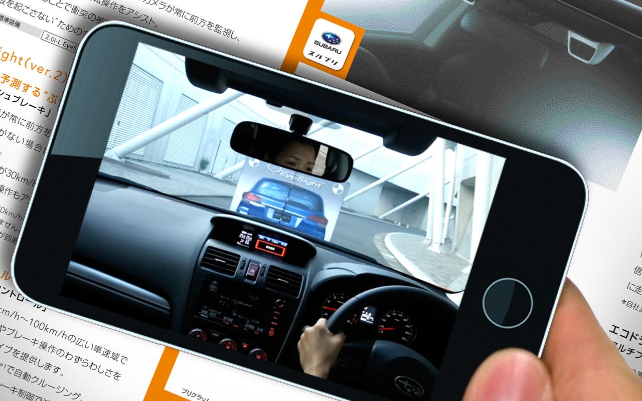 SUBARUのカタログや販売店店頭・屋外の対象物などにスマートフォンをかざすことで、拡張現実(Augmented Reality=AR)の技術を用いたリッチな情報を楽しむことができます。