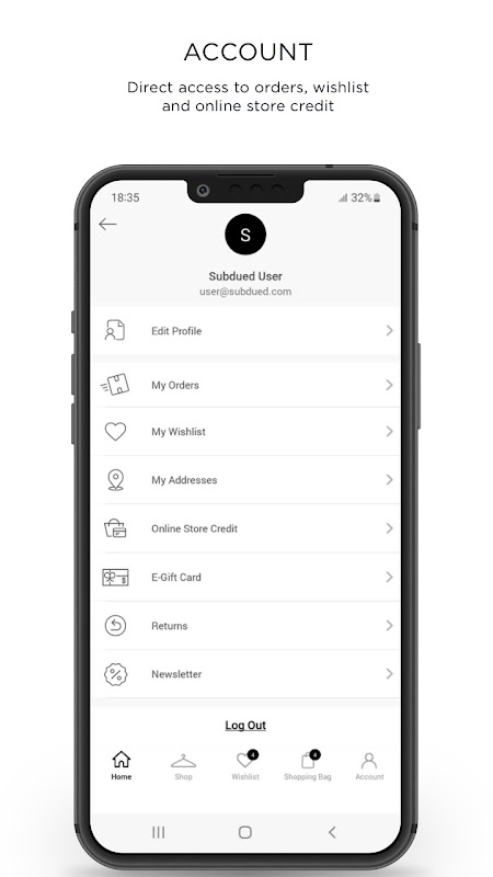 - Manage your e-Gift Cards and store credit directly from your Subdued account