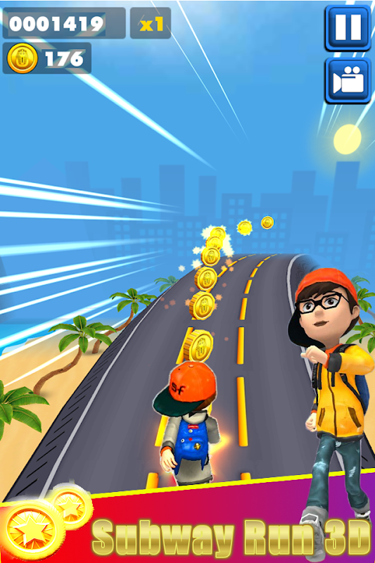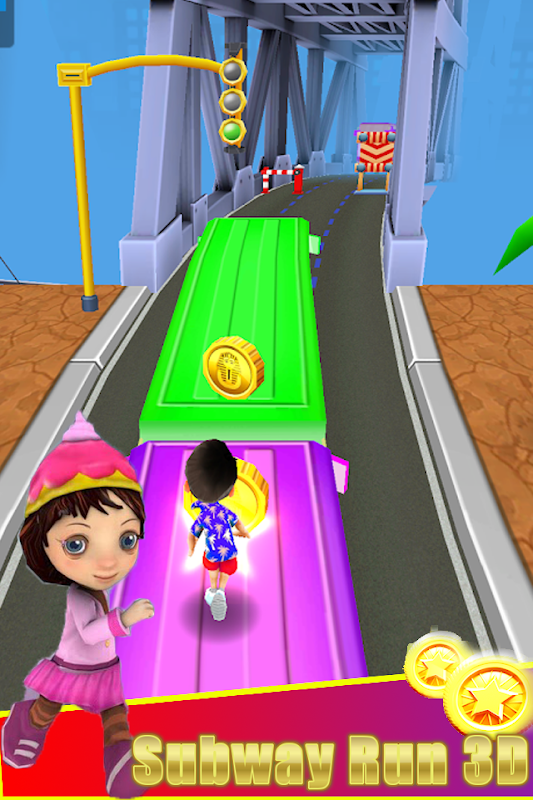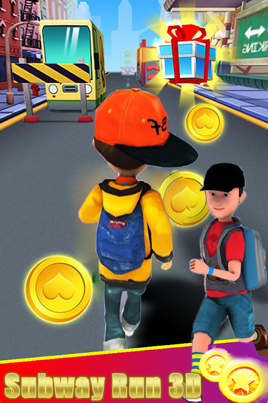 Subway run run 3D runner is an endless running game, to be the best runner, save the beautiful trains. More characters, choose your best liked runner, rush in the beautiful snow subway scenes. Swipe to turn, jump and slide to avoid hitting obstacles, barrier and City Buses. Have exciting run on Bus 3D, collect coins and buy power up. Unlock new characters, and see how far you can run!