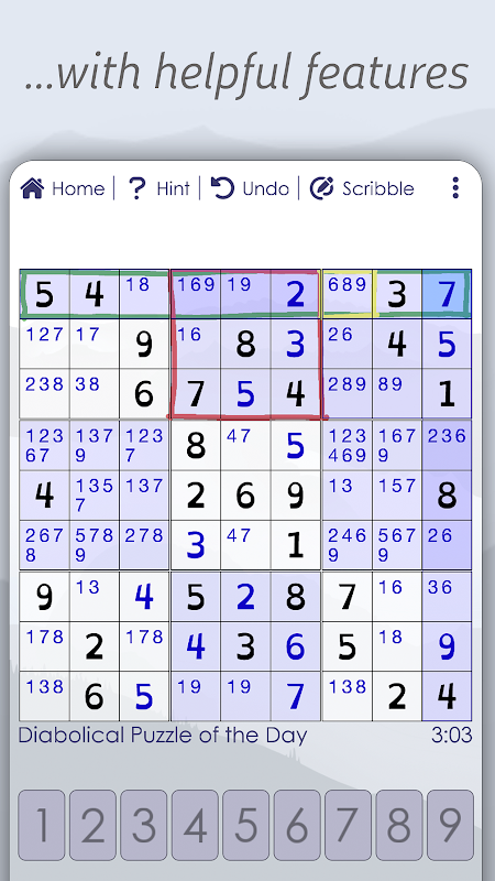 * Smart hints - tap to get a hint, tap again for a bigger hint etc. Ideal for improving your Sudoku skills