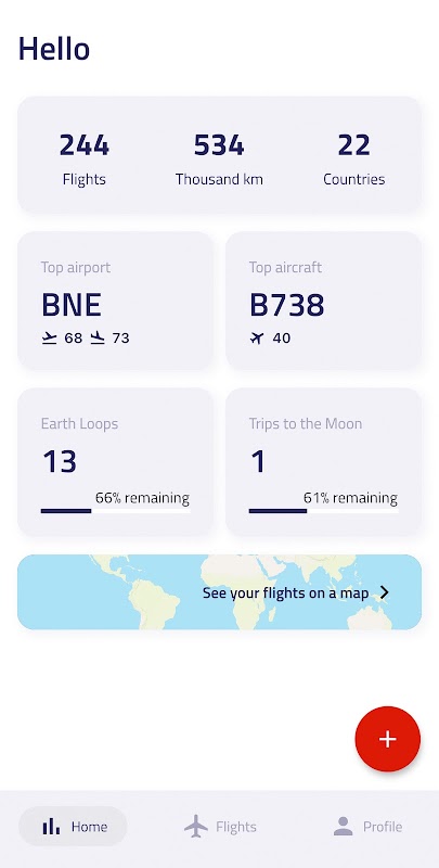 Add your flights by Flight Number or find flights you missed information for by Origin and Destination. Our search allows you to go back up to 5 years! After adding your flights, you'll see some exciting stats and info about your flying history and will be able to explore all the places you visited.