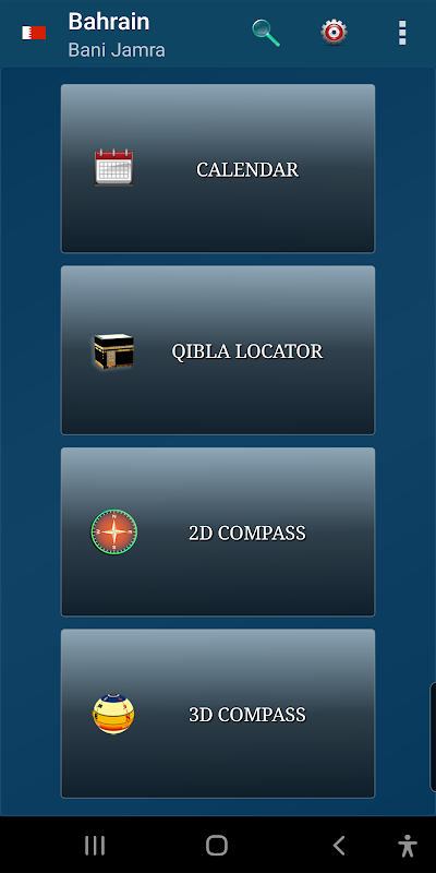 Astronomical Calendar with Prayer Times and a Qibla locator on map and compass.