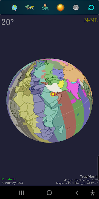 - 2D Compass (position of Sun, Moon & Qibla).
