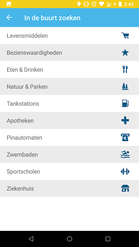- Mogelijkheden om te zoeken en navigeren op kaart;