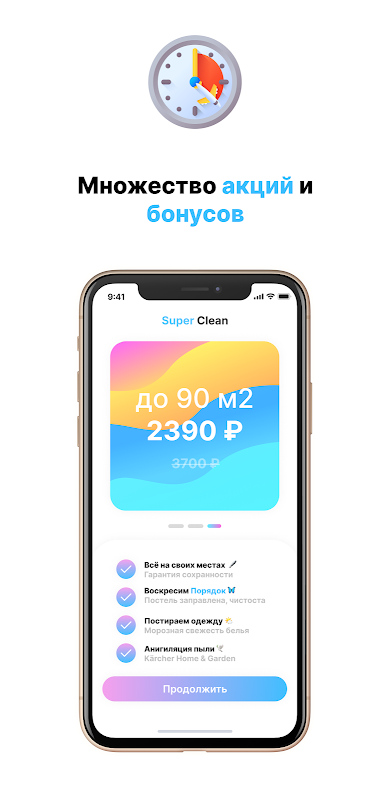 Давайте начистоту: у вас есть одна квартира и пять причин не отдавать драгоценное свободное время уборке. Одна из них — наше приложение. Так что занимайтесь любимым делом, а чистоту в квартире доверьте профессионалам.