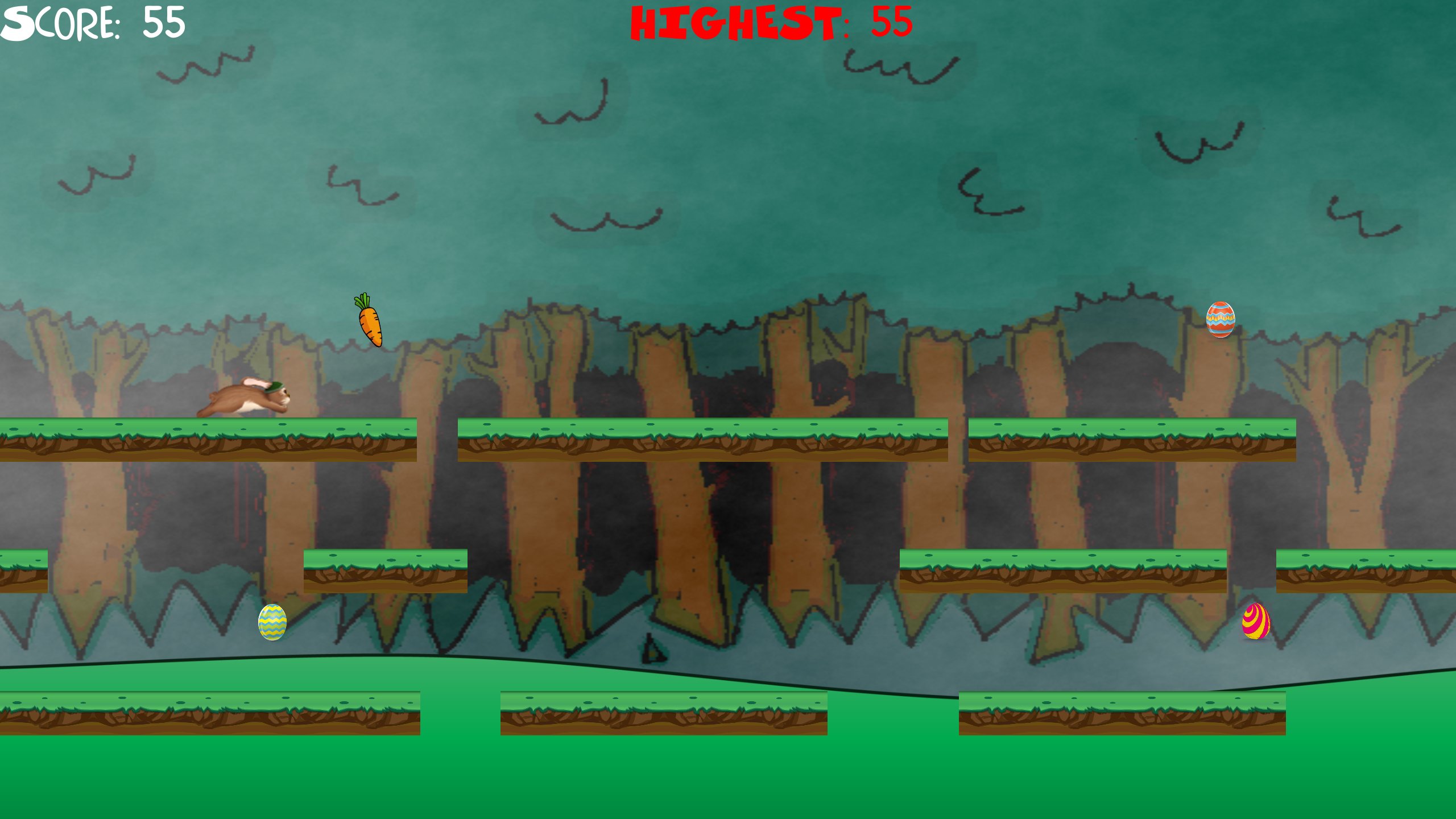 Non stop Jumping and collecting being the Easter Bunny in Super Easter Run! See how many easter eggs you can collect jumping ground to ground and all around but be careful because if you fall in a bunny hole or fall, you have to start over. Good news though, your highest eggs will be saved for you to share and beat.