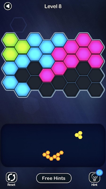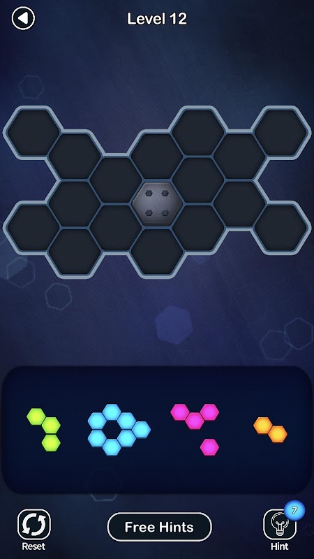 - Get the hexa blocks to fit perfectly to solve the block puzzle.