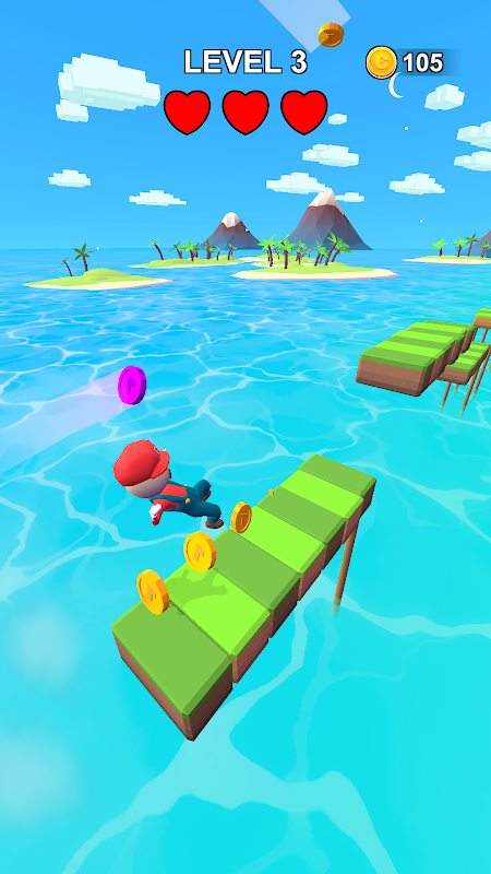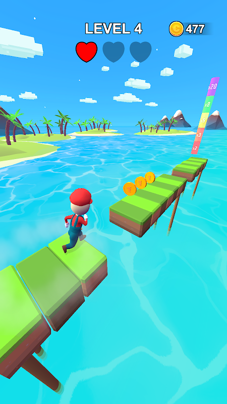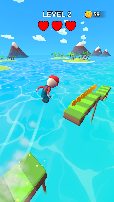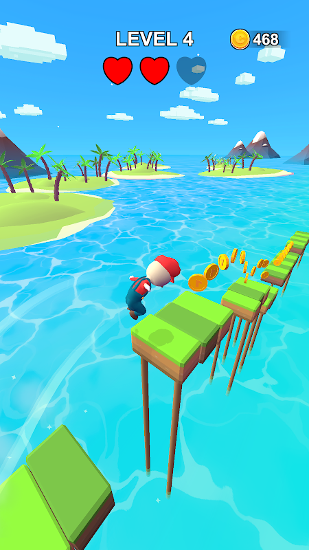 spikes, use your agility and reaction to jump over the islands at the right time and not fall. Choose the best path for yourself, along which you can collect more coins.