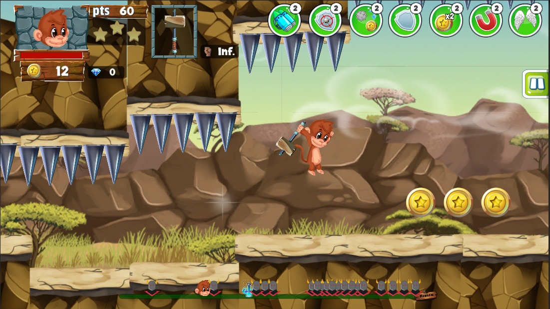 A fun adventure and platform game, full of challenges and difficulty to test your skill and reflexes, beat all levels and unlock incredible rewards as you immerse yourself in the adventure and earn coins to unlock costumes, weapons and super powers, beat all kinds of of platforms with a challenging difficulty, eliminate your enemies with arrows, swords, hammers, pirate dress, super hero, sorcerer, ninja.