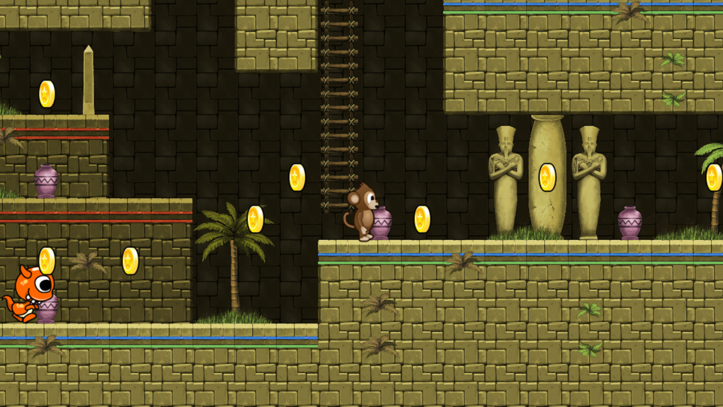 Be careful! There are many angry monsters. They want to stop you in each world.