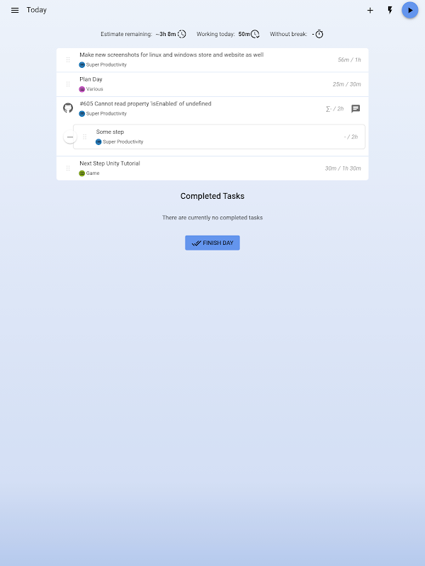 Overwhelmed by your tasks? Super Productivity helps you get more done with powerful timeboxing and intuitive task management.