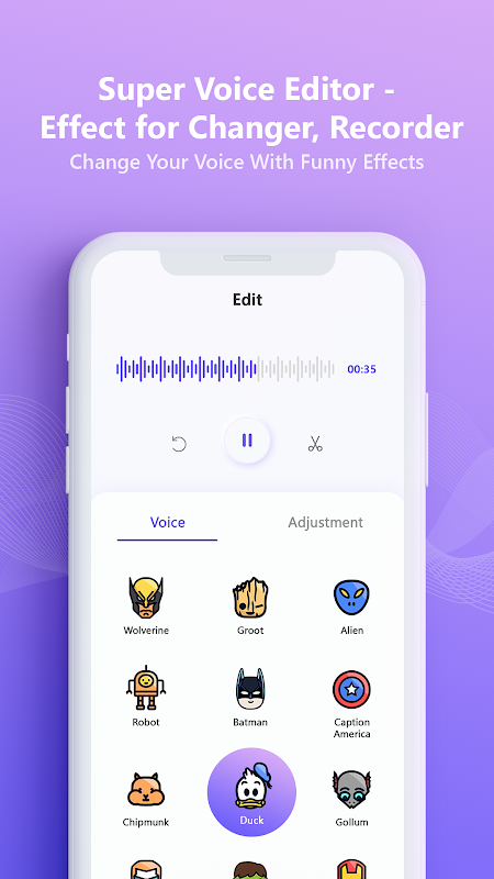 A smart and funny voice changer app effects for voice editor, superhero voice changer and messenger voice changer.