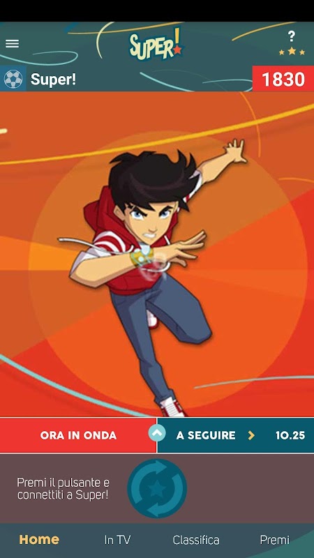 E' facilissimo! Scarica gratuitamente l'app e quando guardi il canale Super!, se vedi sulla TV il simbolo della Stella attiva l'app e premi il pulsante con la stella che trovi sul tuo smartphone, così potrai CONNETTERTI alla TV e scaricare tantissimi contenuti extra sui tuoi programmi preferiti!