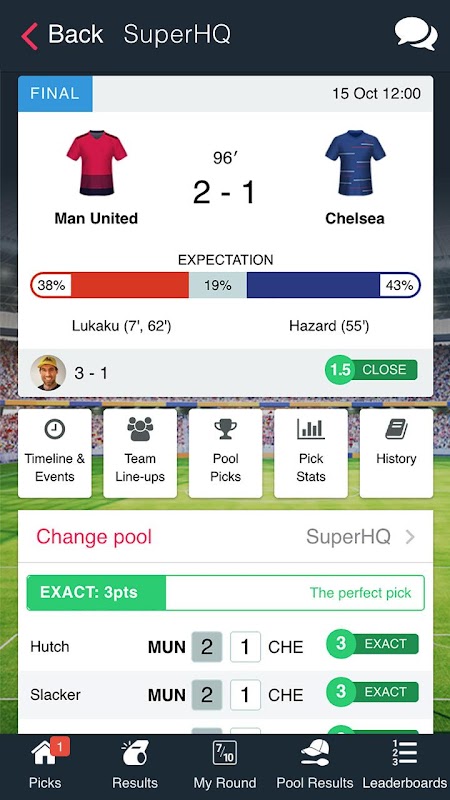 • Goal scored? See how your points change with our live scoring!