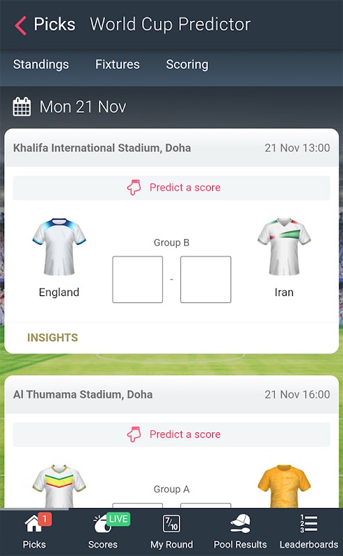• Create your own competition to play in pools against your friends and colleagues
