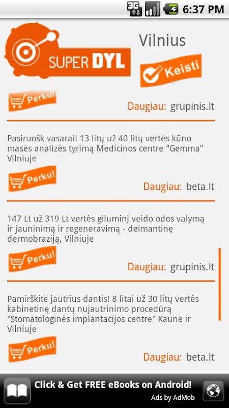 Mūsų mobiliojoje programėlėje rasi pasiūlymus ir akcijas iš portalų beta.lt, bigbonus.lt, dailycard.lt, dyl.lt,