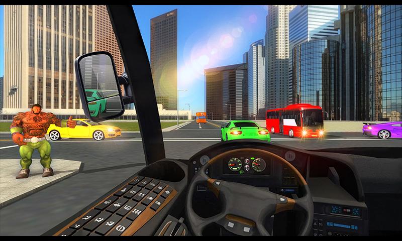 Virtually drive Superhero Mega bus to transport the Superhero in City.