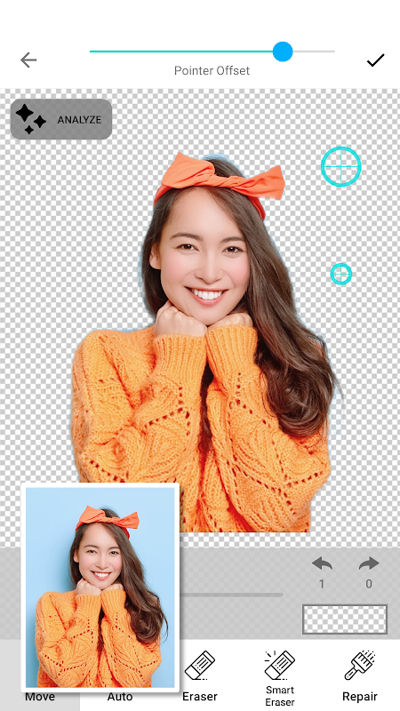Analyze : Analyze your photo, and cut out it automatically.
