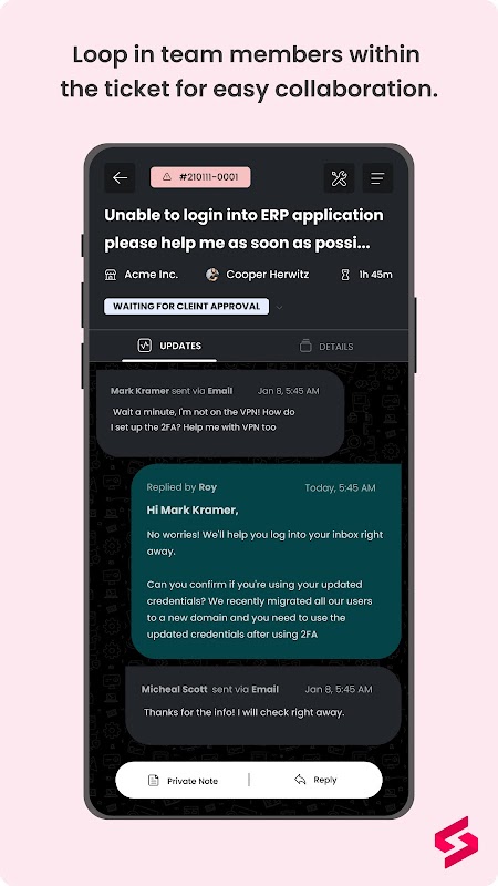 Manage your IT tasks effortlessly on-the-go with SuperOps' nifty mobile app.