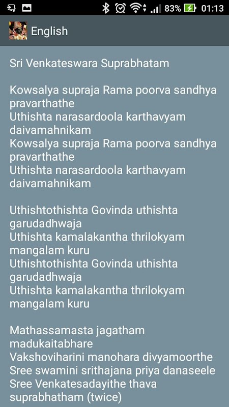 Sri Venkatesa Suprabhatam lyric available in Hindi, Telugu, Tamil, Kannada, Malayalam and English