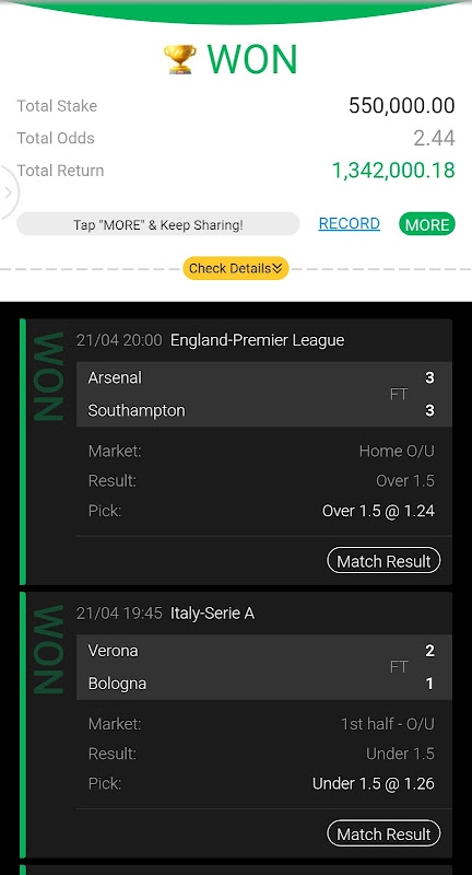 and much more features you can find in our application. You can become our VIP member to see the special correct score tips we share with our VIP community worth 100-500+ Daily Fixed Odds.....