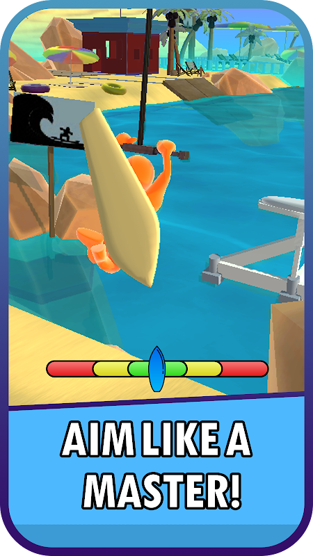 Surf’s Up and tap to jump into the sky. Don't forget to put the trampoline into the water to fly even higher!