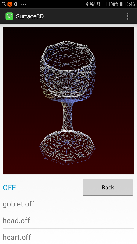 Shows 3D shapers of various formats. Use gestures to rotate or zoom the shape. Switch between mesh, wireframe or point cloud representation. Textures in PNG and JPEG are also supported. Upload your own shape from a local file!