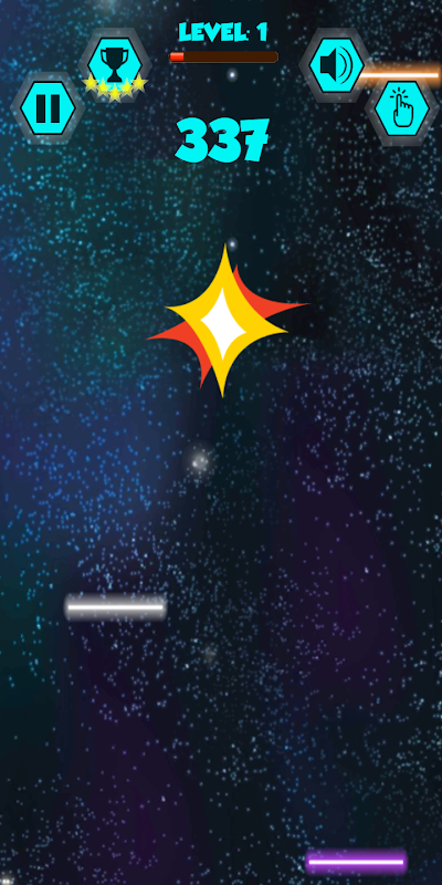 Tap for giving an upward impulse and tilt your device to move the rocket sideways.