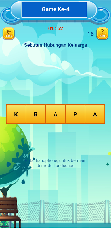 Game ini adalah sebuah permainan yang menguji kemampuanmu dalam menyusun kata-kata dari kumpulan huruf acak. Kamu akan diminta untuk merangkai huruf-huruf tersebut menjadi kata yang memiliki makna.