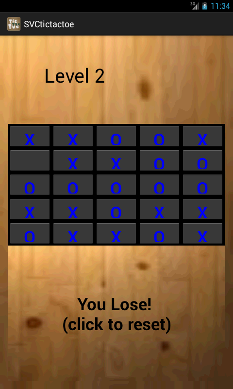 SVCTic Tac Toe is a fun game. This game supports all screen sizes and you can play the game on your Android device. User is first player(X) and Android is second player (0).