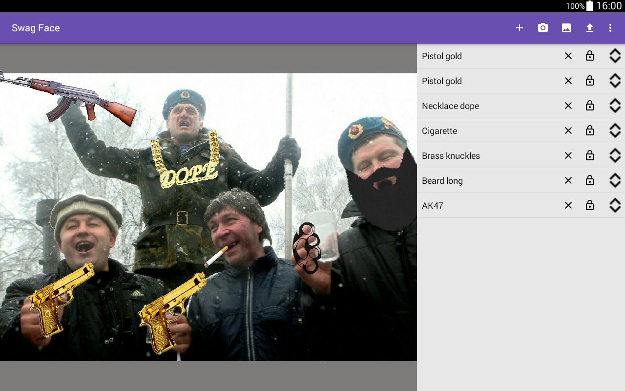 Have fun making a lot of swag pictures with your friends and share them on your social media. Don't forget to rate this app if you enjoyed it! And feel free to contact us by email if you have problems or feedback.