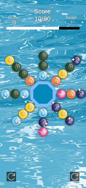 On this game the objective is to match different chips according to the color. The chips are distributed around an octagon and they can be rotated or swapped.