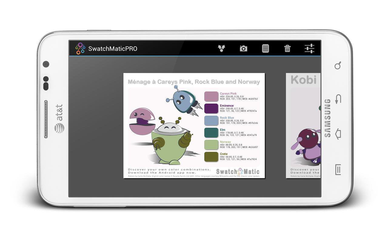☆ Augmented reality style UI lets you build color palettes in real time, on top of whatever you're viewing through your Android.